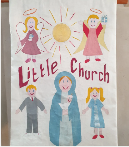 Little church is run by groups of volunteers who introduce children, aged 3-7years old, to the Gospel in a way that they can understand, in a prayerful reflective atmosphere. This can be through singing, acting out the gospel, drawing and composing prayers.